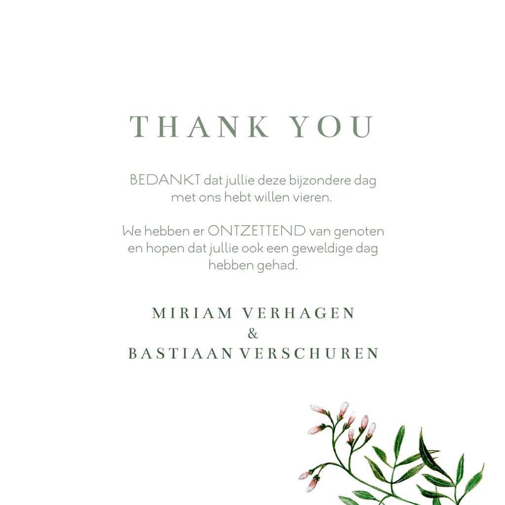 Bedankkaart met jasmijn bloemen en takjes uit de serie JASMIJN