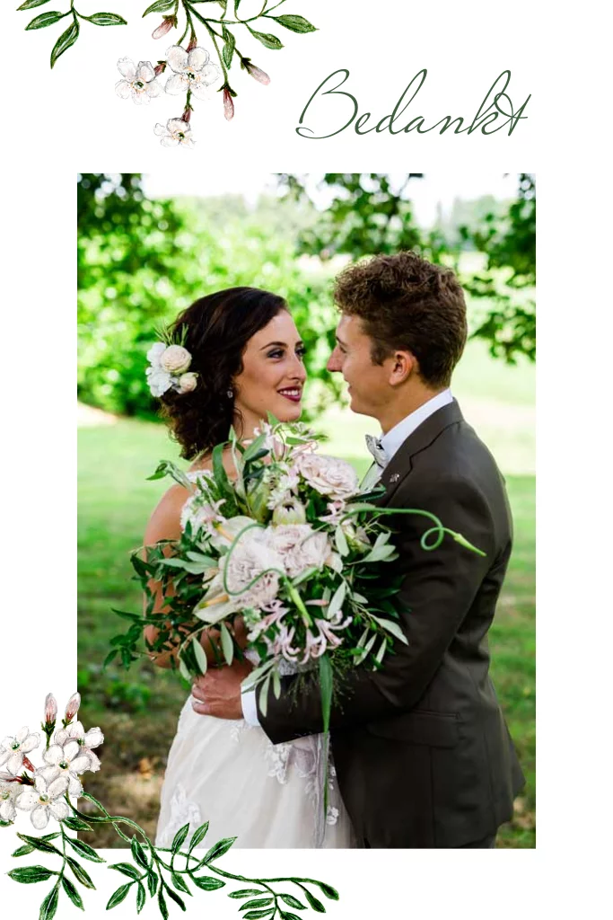 Bedankkaart met foto en jasmijntakjes. Dit bedankkaartje is uit de serie jasmijn.