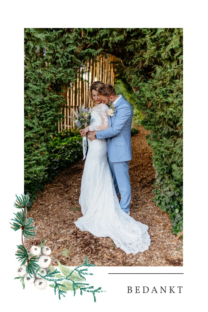 Bedankkaart winter krans met foto op de voorkant. Modern, handgetekend en chique!
