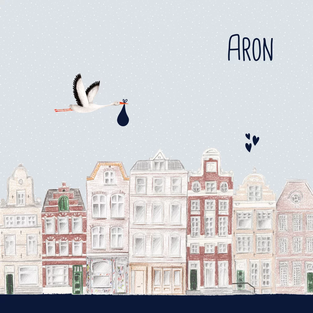 Op zoek naar een origineel getekend geboortekaartje? Dan is dit lieve kaartje geïllustreerd met een ooievaar door Marjolein perfect voor jullie kleine ventje! Uniek, vrolijk en ontzettend lief.