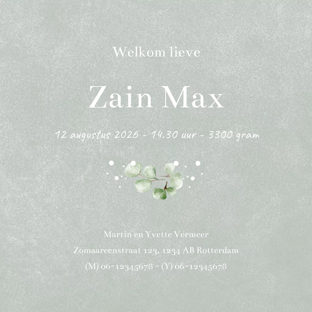 Op zoek naar een origineel getekend geboortekaartje? Dan is dit lieve kaartje geïllustreerd met eucalyptus en goudfolie perfect voor jullie kleine ventje! Uniek, vrolijk en ontzettend lief.