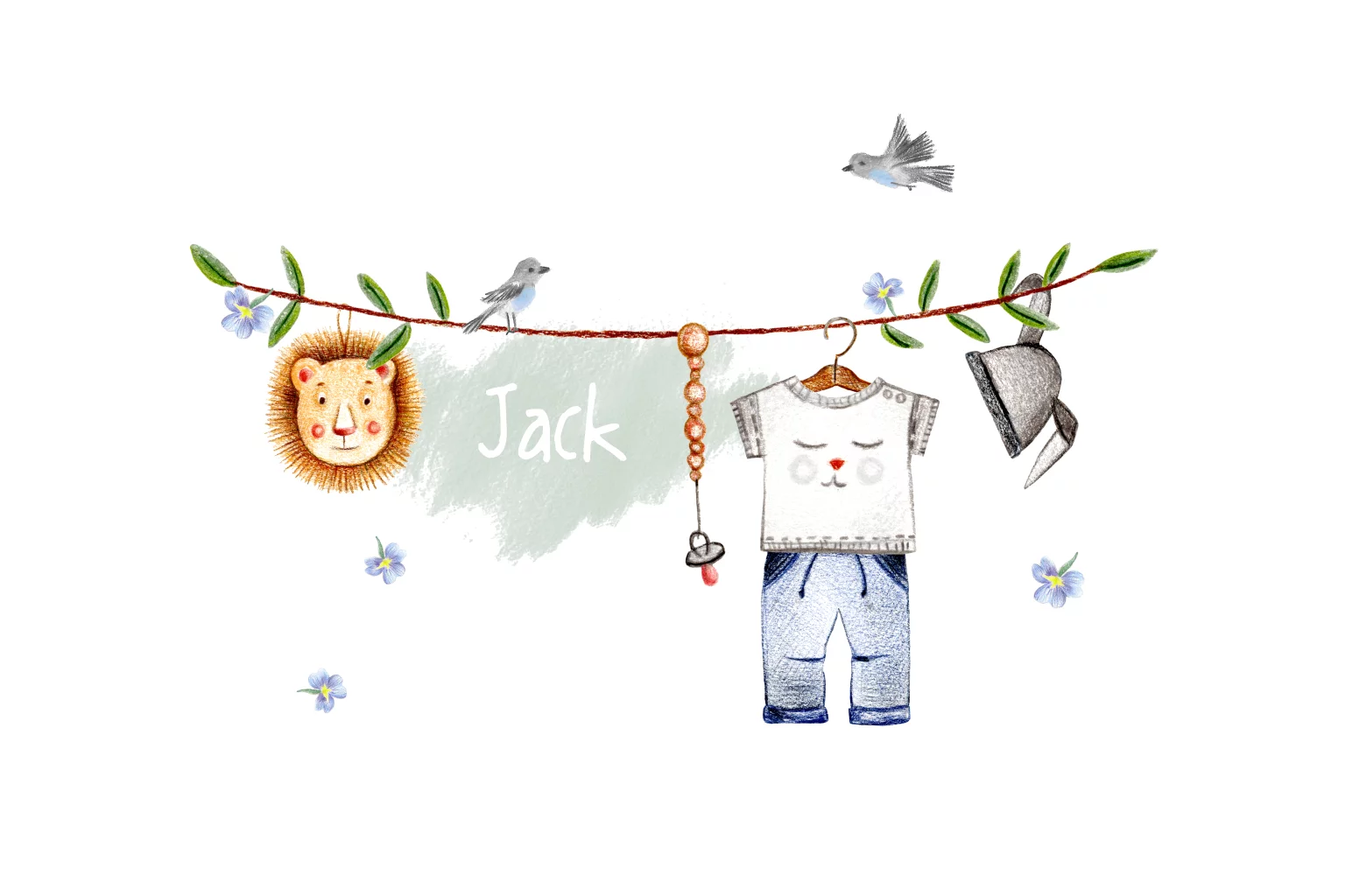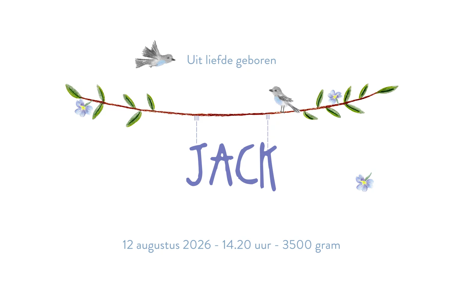 Geboortekaartje jongen hangende kleertjes vogeltjes