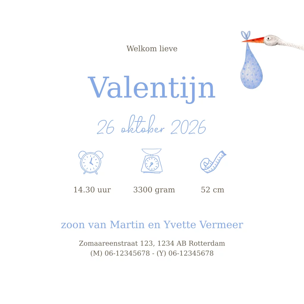Op zoek naar een origineel getekend geboortekaartje? Dan is dit lieve kaartje geïllustreerd met een ooievaar door Marjolein perfect voor jullie kleine ventje! Uniek, vrolijk en ontzettend lief.