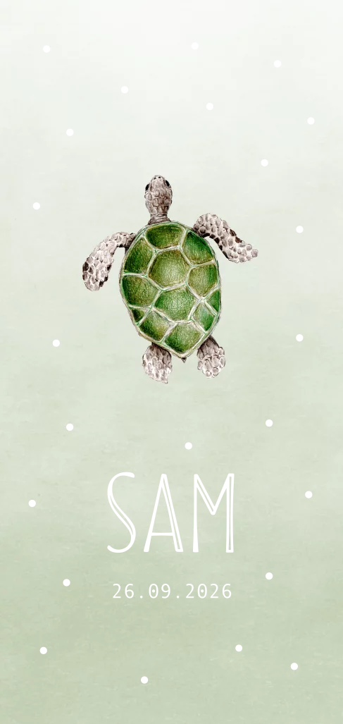 Op zoek naar een origineel getekend geboortekaartje? Dan is dit lieve kaartje geïllustreerd met een schildpad en afgewerkt met goudfolie door Marjolein perfect voor jullie meisje! Uniek, vrolijk en ontzettend lief.