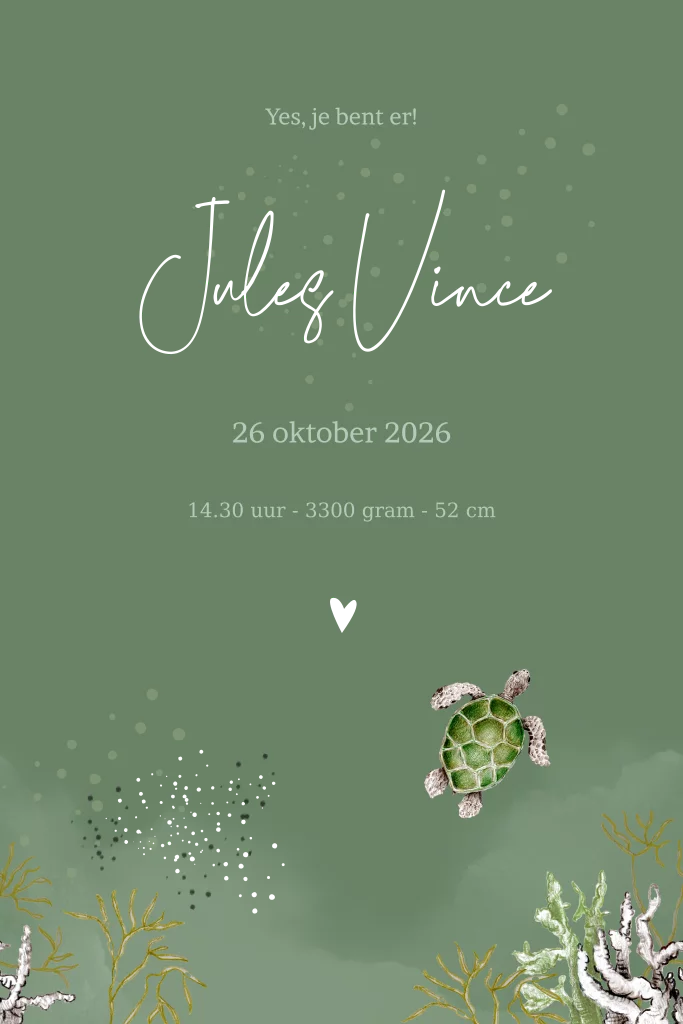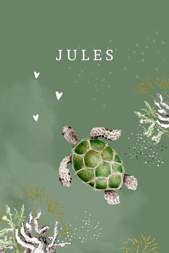 Op zoek naar een origineel getekend geboortekaartje? Dan is dit zeedieren kaartje geïllustreerd met een schildpad door Marjolein perfect voor jullie kleine ventje! Uniek, vrolijk en ontzettend lief.