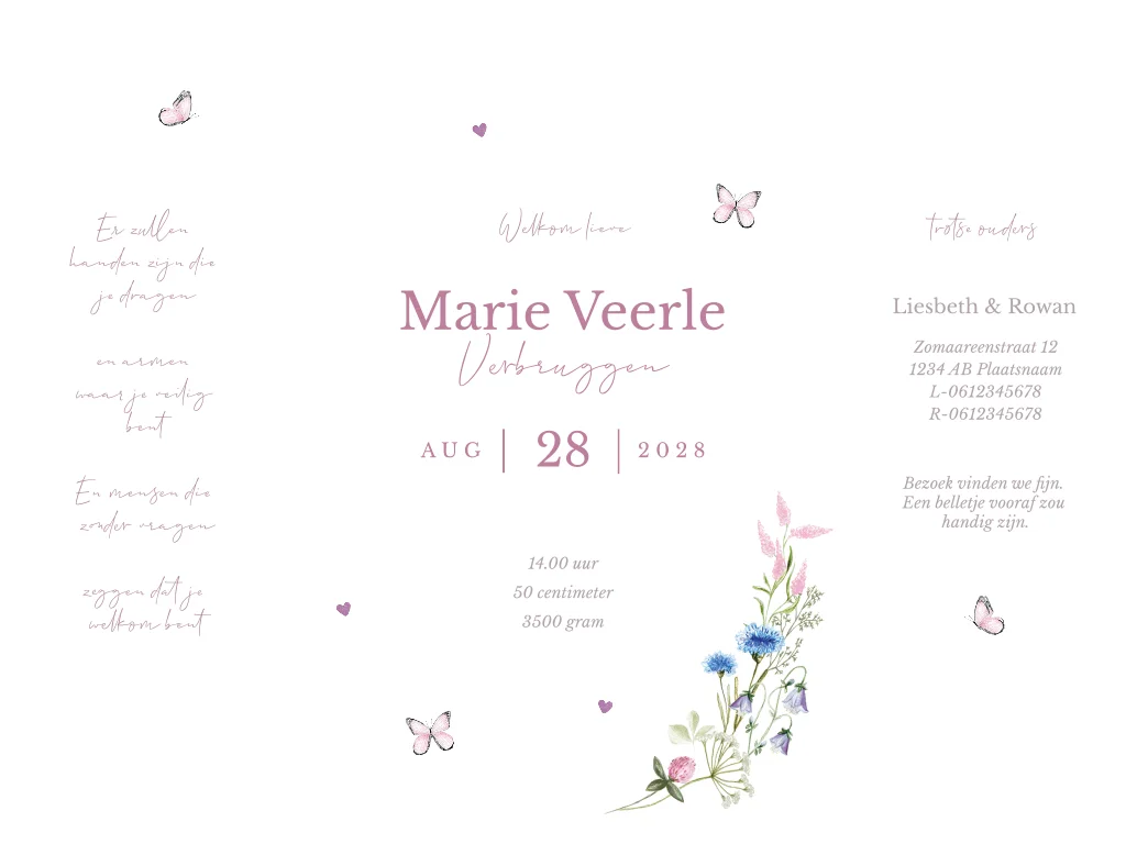 Geboortekaartje Luikvouw veldbloemen pastel