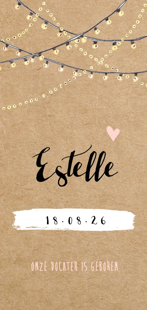 Feestelijke geboortekaart met lampjes