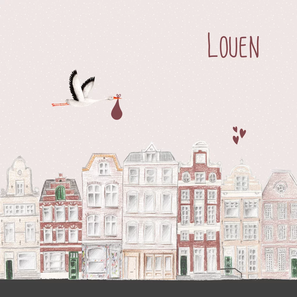 Op zoek naar een origineel getekend geboortekaartje? Dan is dit lieve kaartje geïllustreerd met een ooievaar door Marjolein perfect voor jullie kleine meisje! Uniek, vrolijk en ontzettend lief.