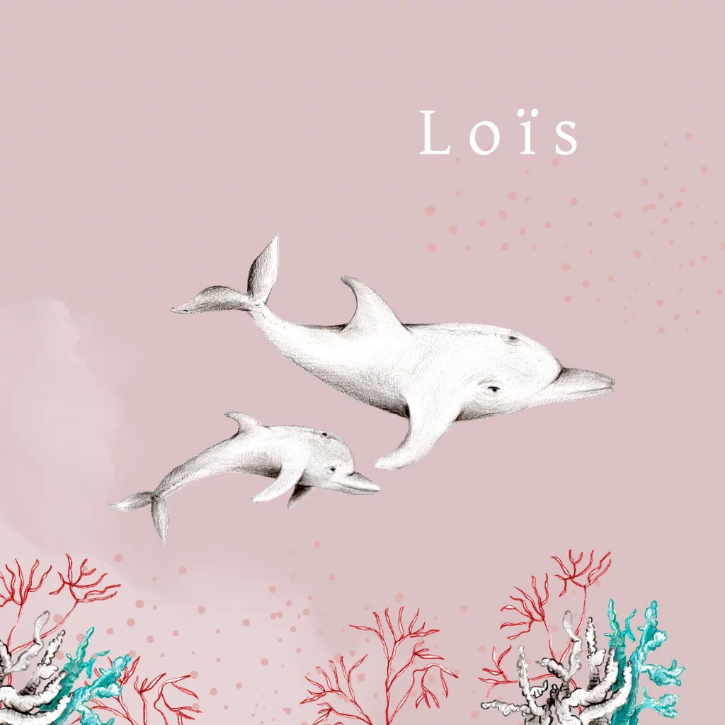 Op zoek naar een origineel getekend geboortekaartje? Dan is dit lieve kaartje geïllustreerd met moeder en baby dolfijn door Marjolein perfect voor jullie kleine meisje! Uniek, vrolijk en ontzettend lief.