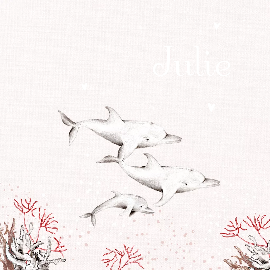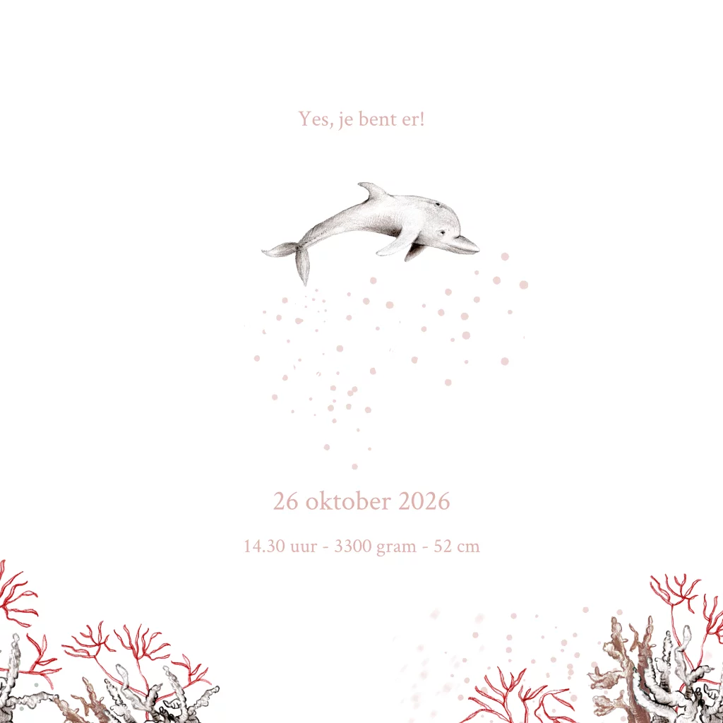 Op zoek naar een origineel getekend geboortekaartje? Dan is dit stoere kaartje geïllustreerd met dolfijnen door Marjolein perfect voor jullie kleine meisje! Uniek, vrolijk en ontzettend lief.