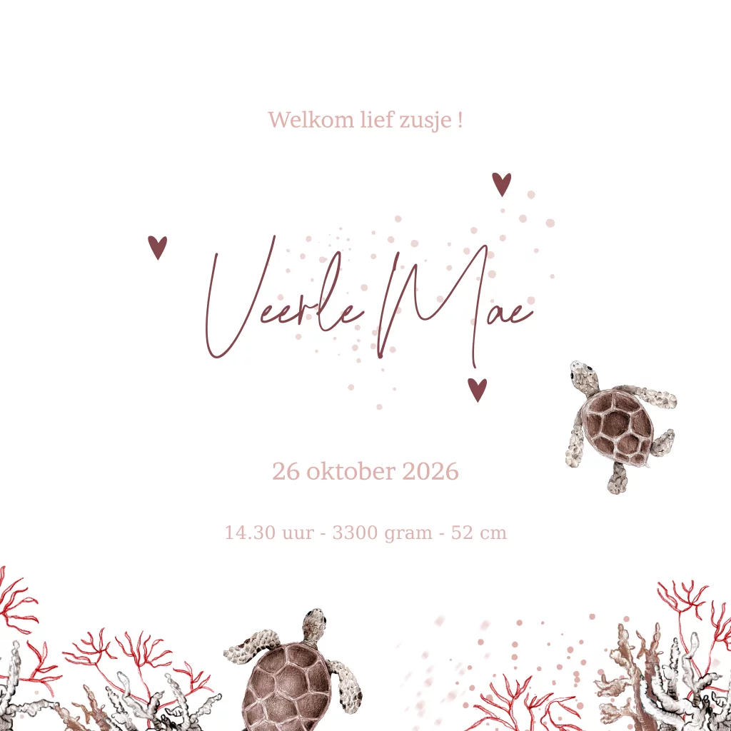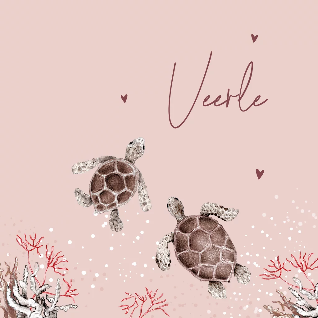 Op zoek naar een origineel getekend geboortekaartje voor een tweede kindje? Dan is dit lieve kaartje geïllustreerd met een schildpadjes door Marjolein perfect voor jullie kleine meisje!