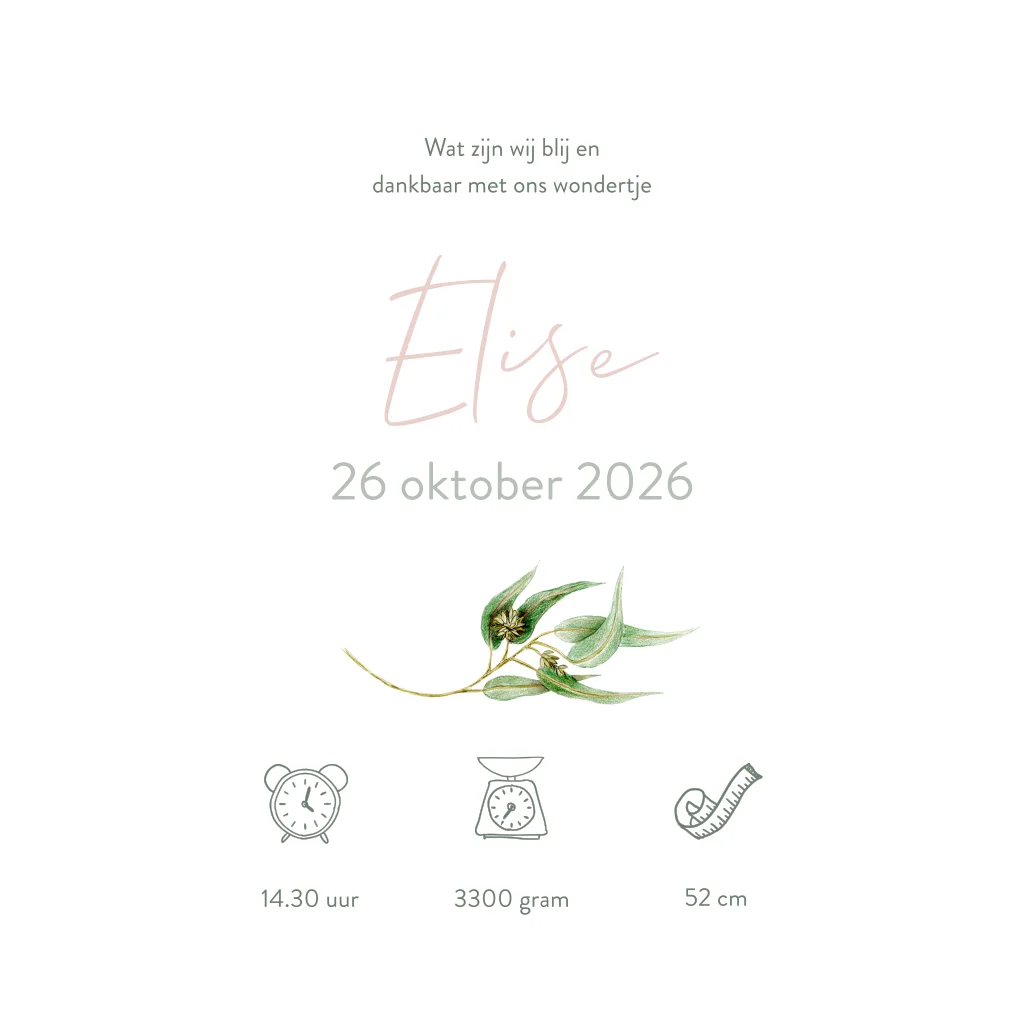• Bij dit geboortekaartje past de papiersoort natuurkarton perfect.