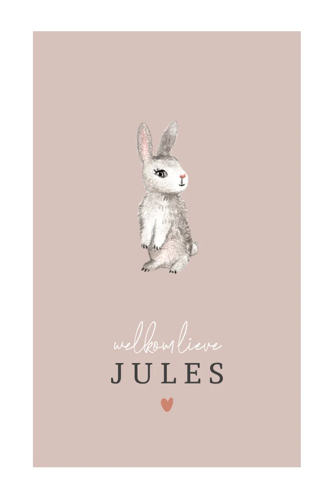 Op zoek naar een origineel getekend geboortekaartje? Dan is dit lieve kaartje geïllustreerd met een konijntje door Marjolein perfect voor jullie kleine meisje! Uniek, vrolijk en ontzettend lief.