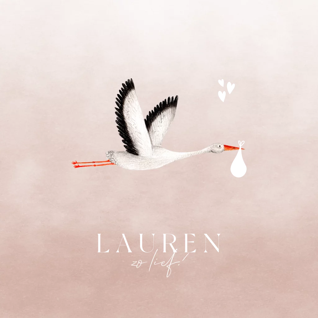 Op zoek naar een origineel getekend geboortekaartje? Dan is dit lieve kaartje geïllustreerd met een ooievaar door Marjolein perfect voor jullie kleine meisje! Uniek, vrolijk en ontzettend lief.