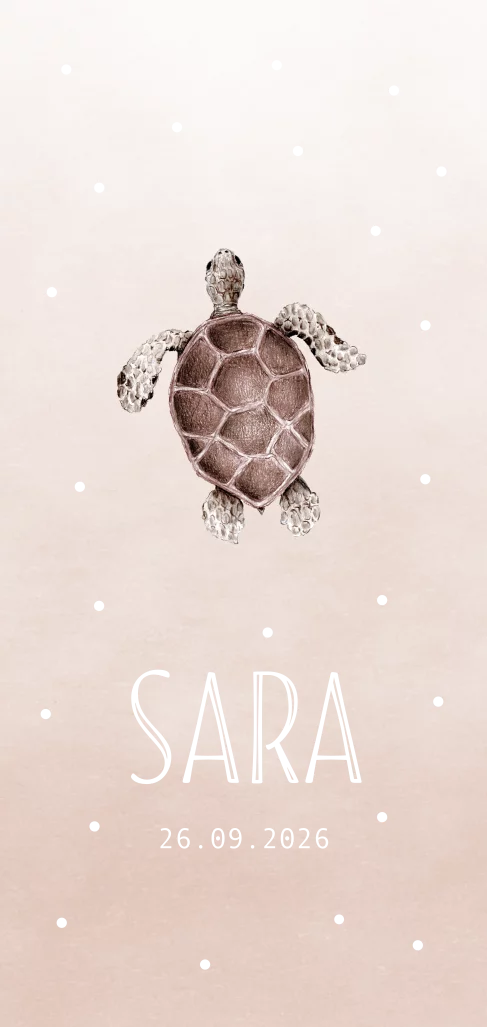 Op zoek naar een origineel getekend geboortekaartje? Dan is dit lieve kaartje geïllustreerd met een schildpad en afgewerkt met rosefolie door Marjolein perfect voor jullie meisje! Uniek, vrolijk en ontzettend lief.