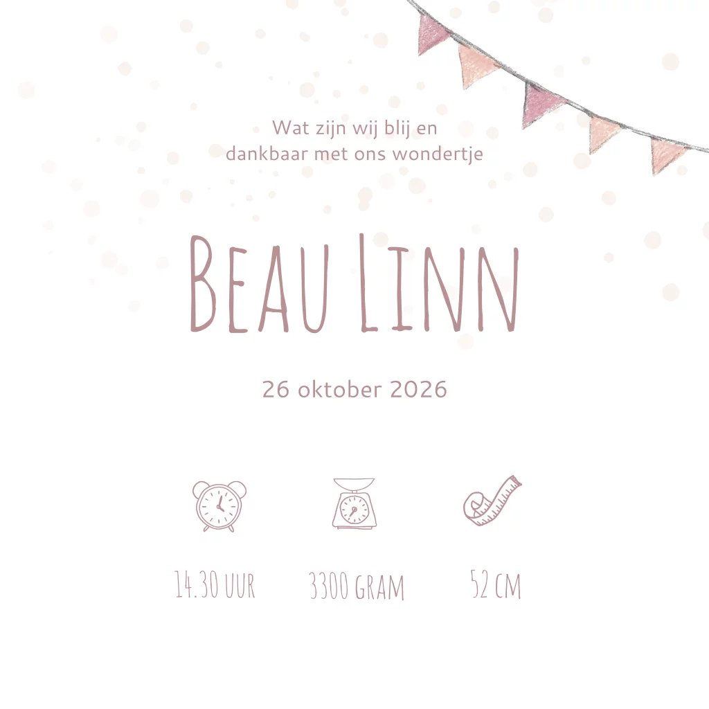 • Bij dit geboortekaartje past de papiersoort natuurkarton perfect.