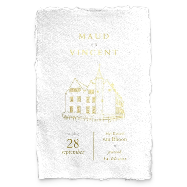 klassieke trouwkaart handgeschept papierlook trouwlocatie folie