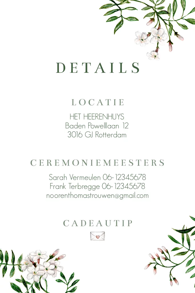 Strak en stijlvol deze extra informatie kaart uit de trouwhuisstijl JASMIJN.