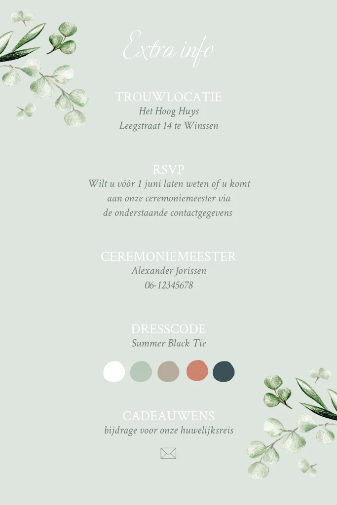 • Extra producten en kaarten in de stijl mogelijk