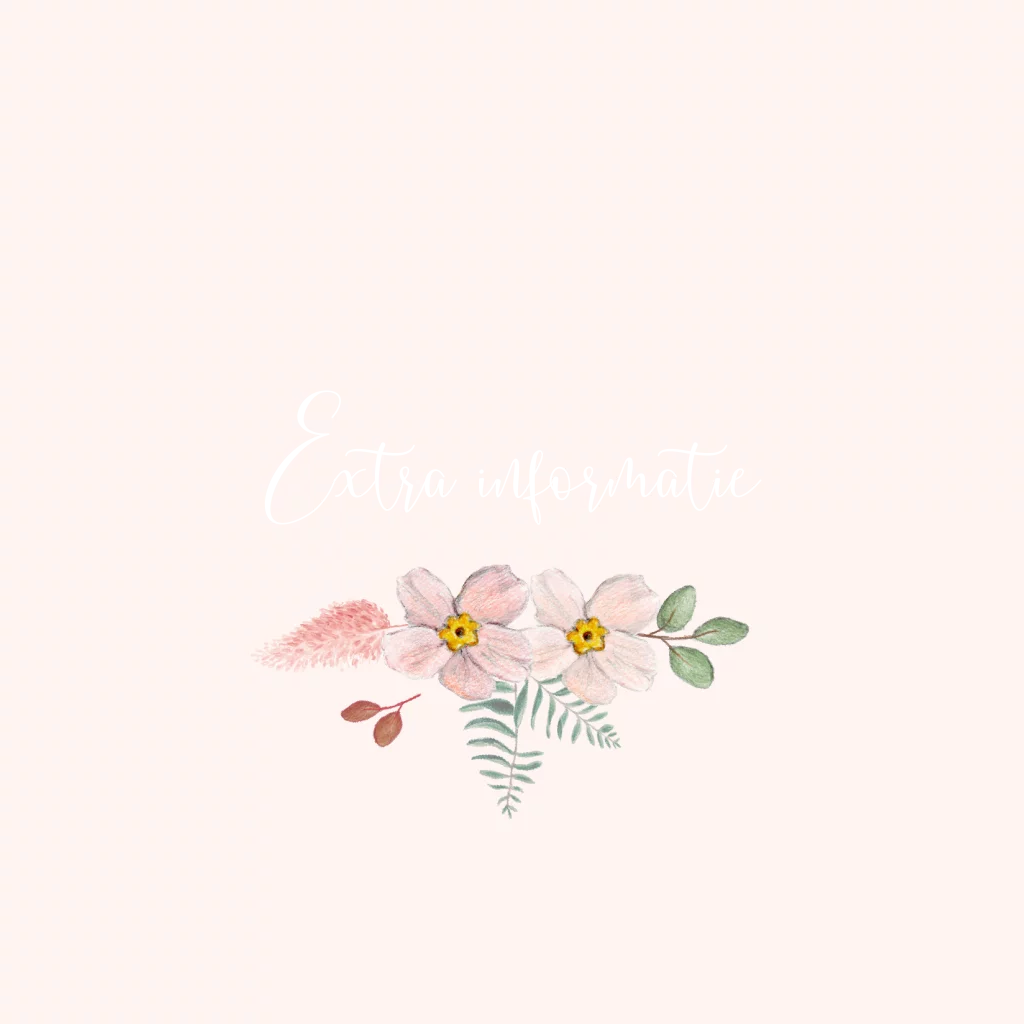 Extra informatie kaartje romantisch met roest bloemen en blaadjes. Gebruik dit kaartje bij je trouwkaart om zo extra informatie aan jullie gasten te geven. Leuk met een lint of een touwtje om het verzendklaar te maken.