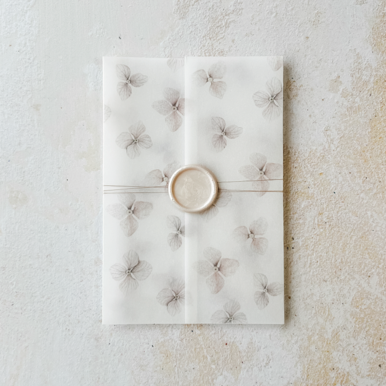 Calco omslag met getekende hortensia bloemen uit de serie delicate