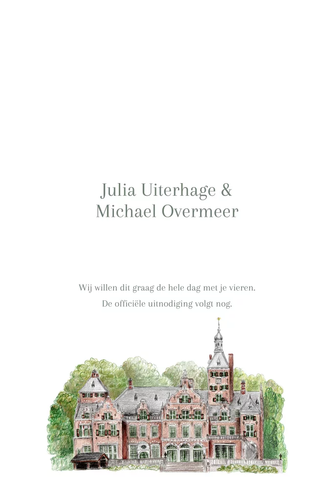 Save the date kaart kalkpapier trouwlocatie rosefolie