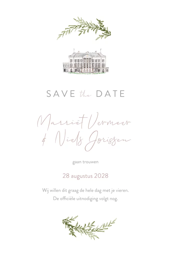 save the date kaart kalkpapier chique getekend trouwlocatie parc broekhuizen| Totaalprijs: 0 |
