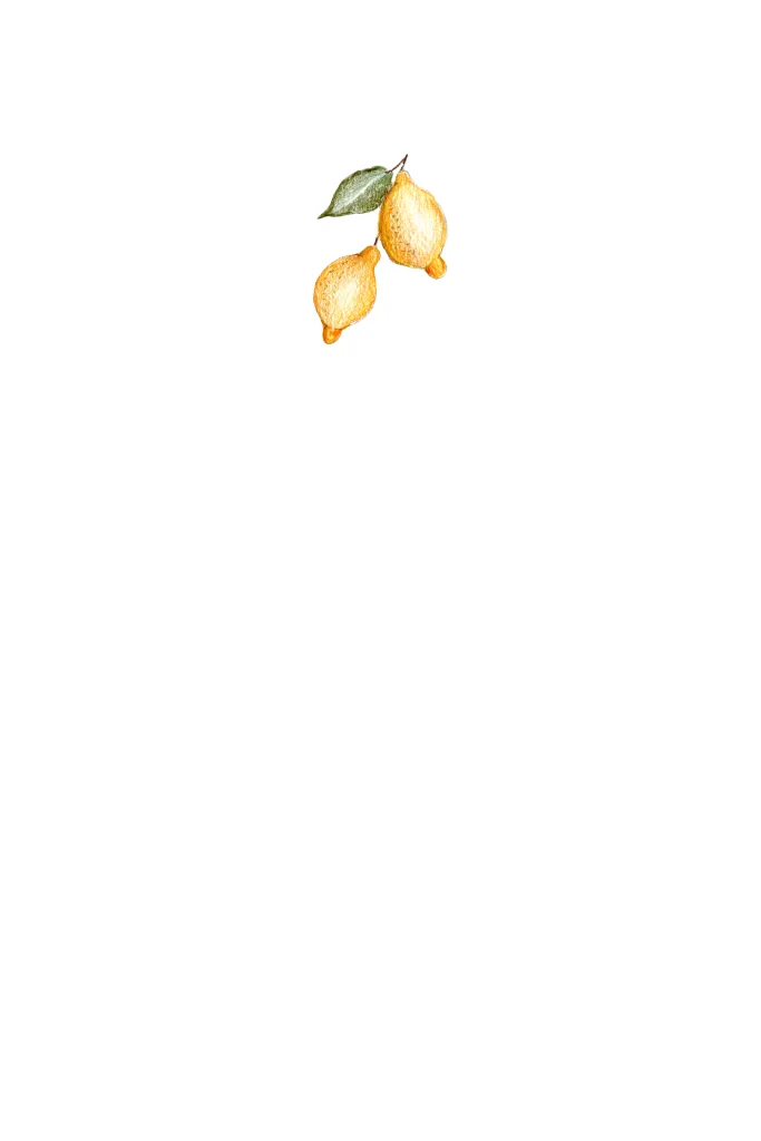 Trouwkaart met getekende citroentjes en goudfolie. Handgetekend en chique!