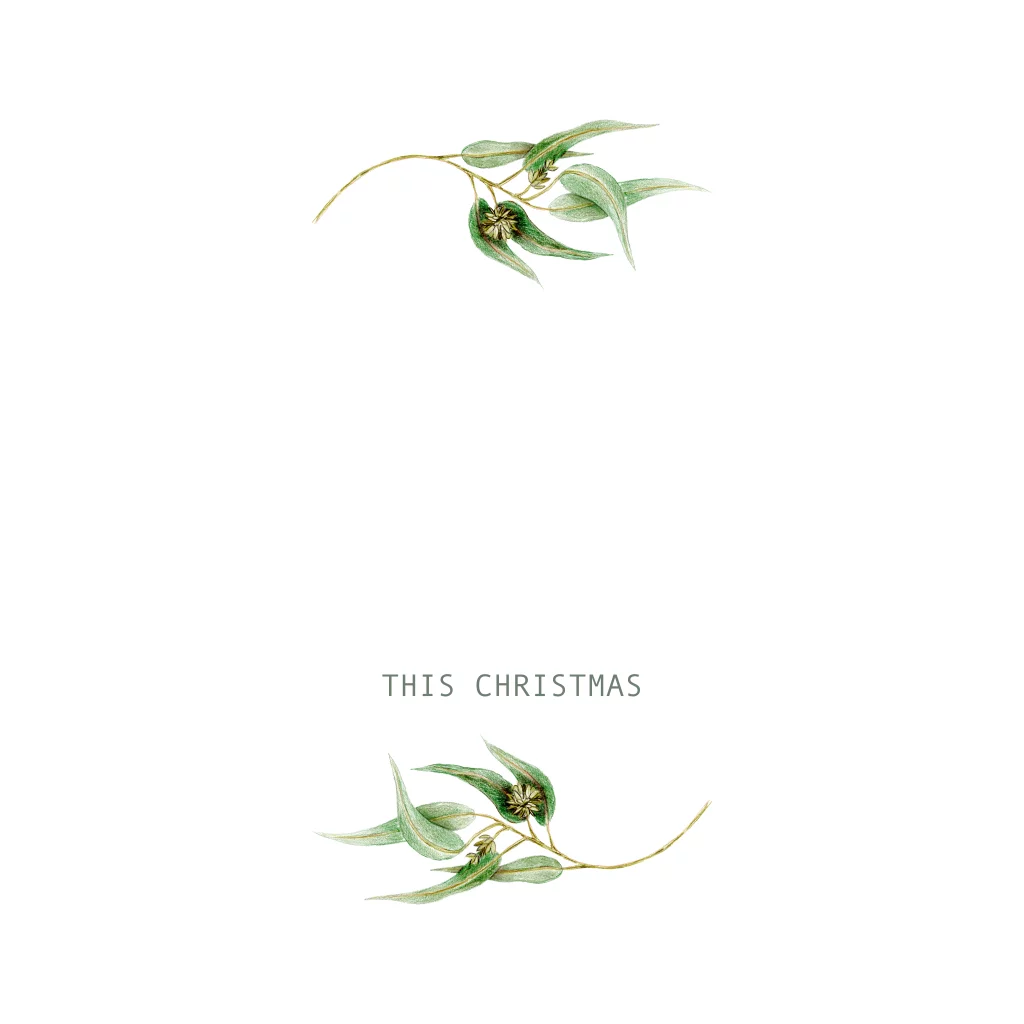 Kerst save the date kaart vierkant eucalyptus hartje met een klassieke, chique touch. Met getekende eucalyptus blaadjes en goudfolie details.