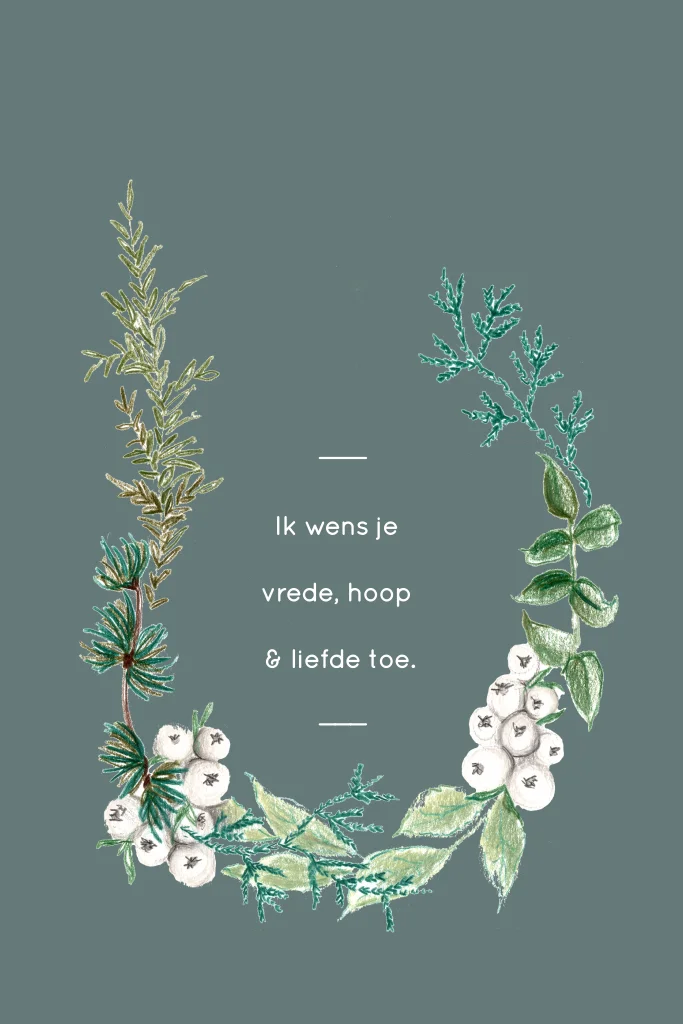 Op zoek naar een origineel getekende kerstkaart? Dan is dit unieke kaartje geïllustreerd met een winter krans door Marjolein perfect voor jullie!