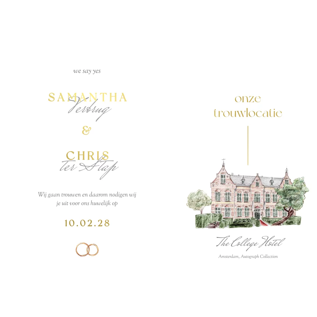 Trouwkaart chique trouwlocatie College Hotel stapelkaartjes