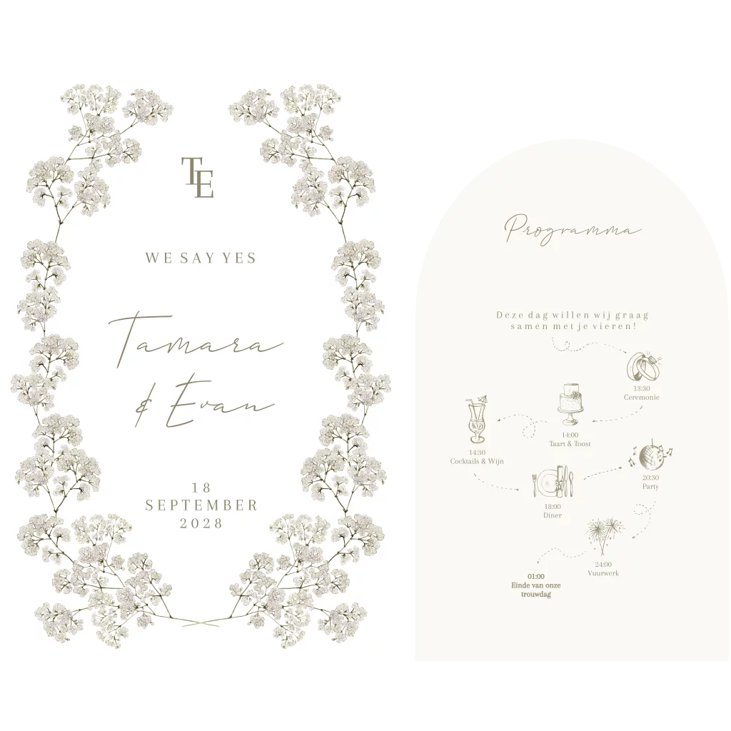 Trouwkaart gipskruid stapelkaartjes en inlegkaartjes voor het insteekmapje