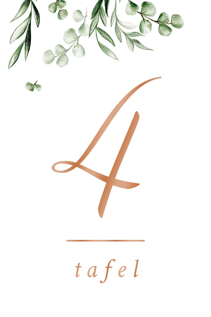 Tafelnummer met blaadjes groen Modern, handgetekend, tijdloos en chique!