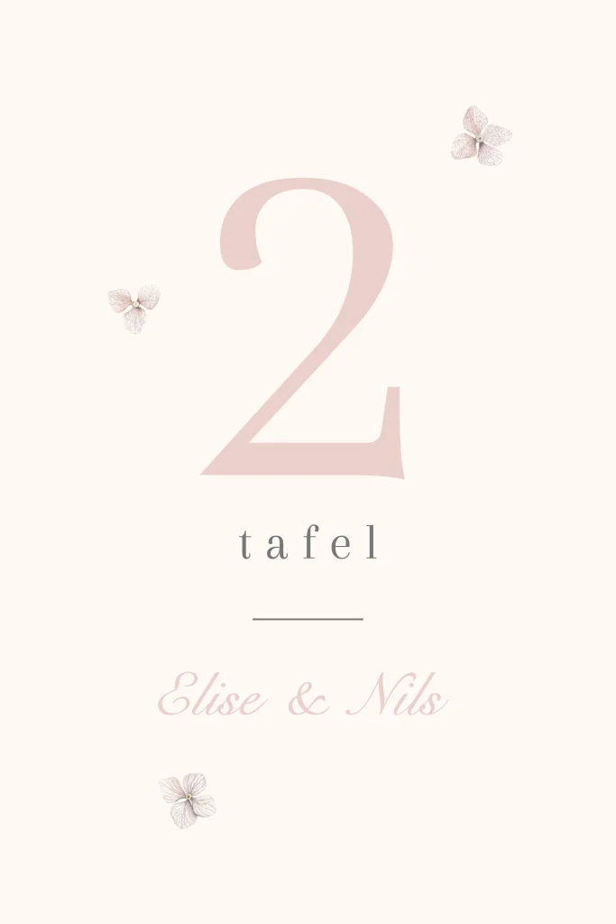Tafelnummer gedroogde bloemen hortensia bijbehorend bij de serie Delicate.