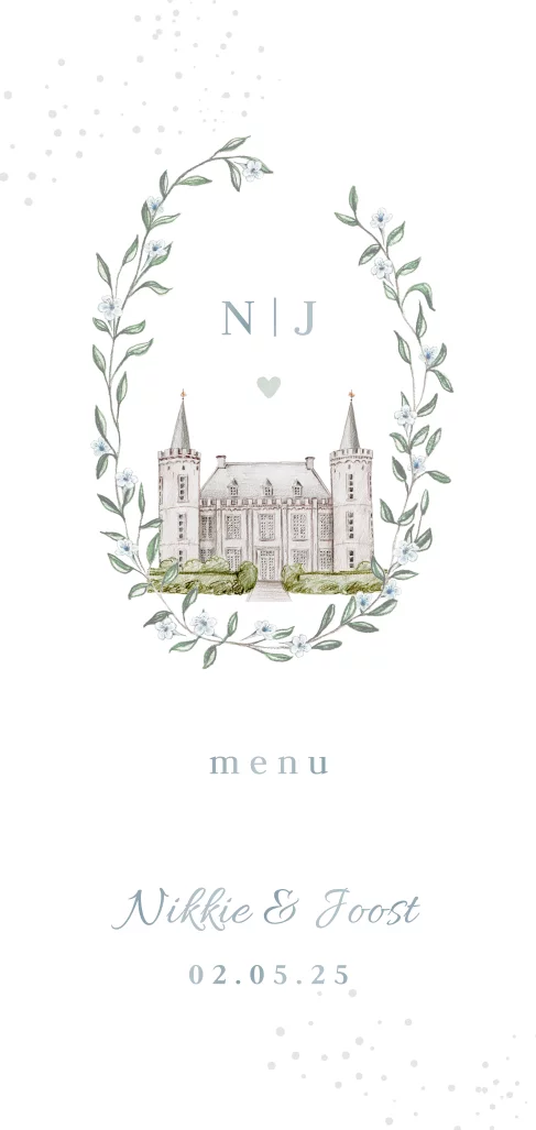 Menukaart chique krans getekend kasteel henkenshage Modern, handgetekend en chique!