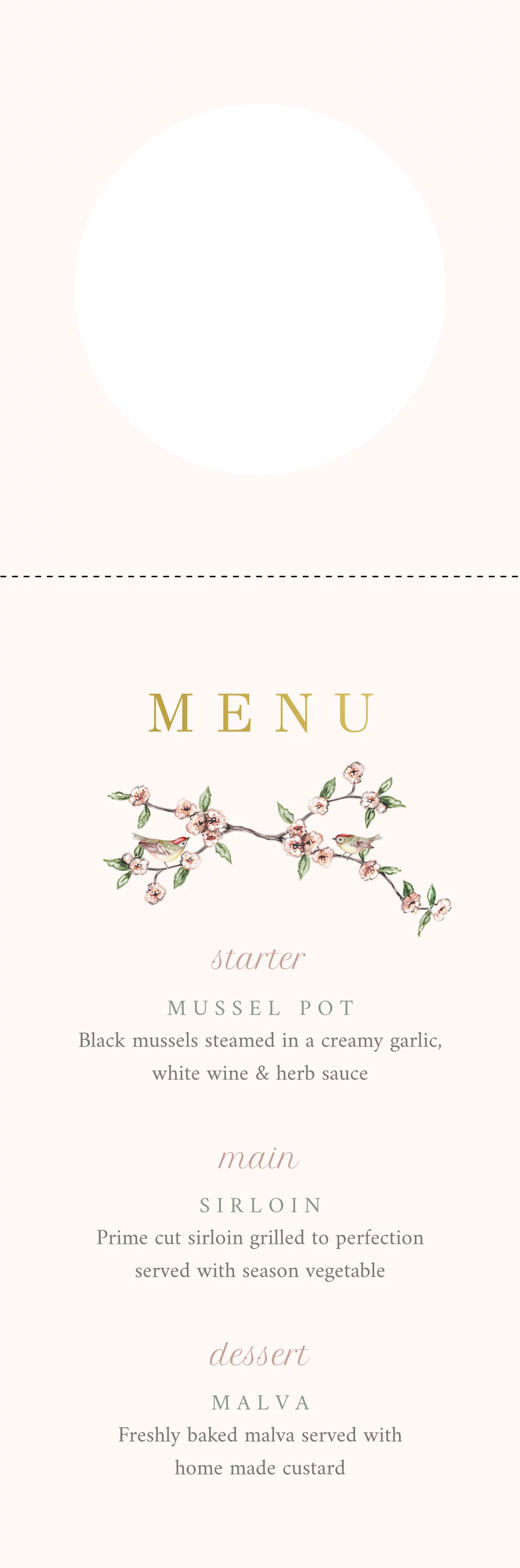 wijnhanger menu met vogeltje blooming