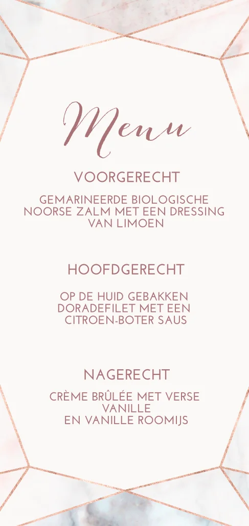 Menukaart met marmer achtergrond en moderne letters, pas zelf de tekst aan in de editor.