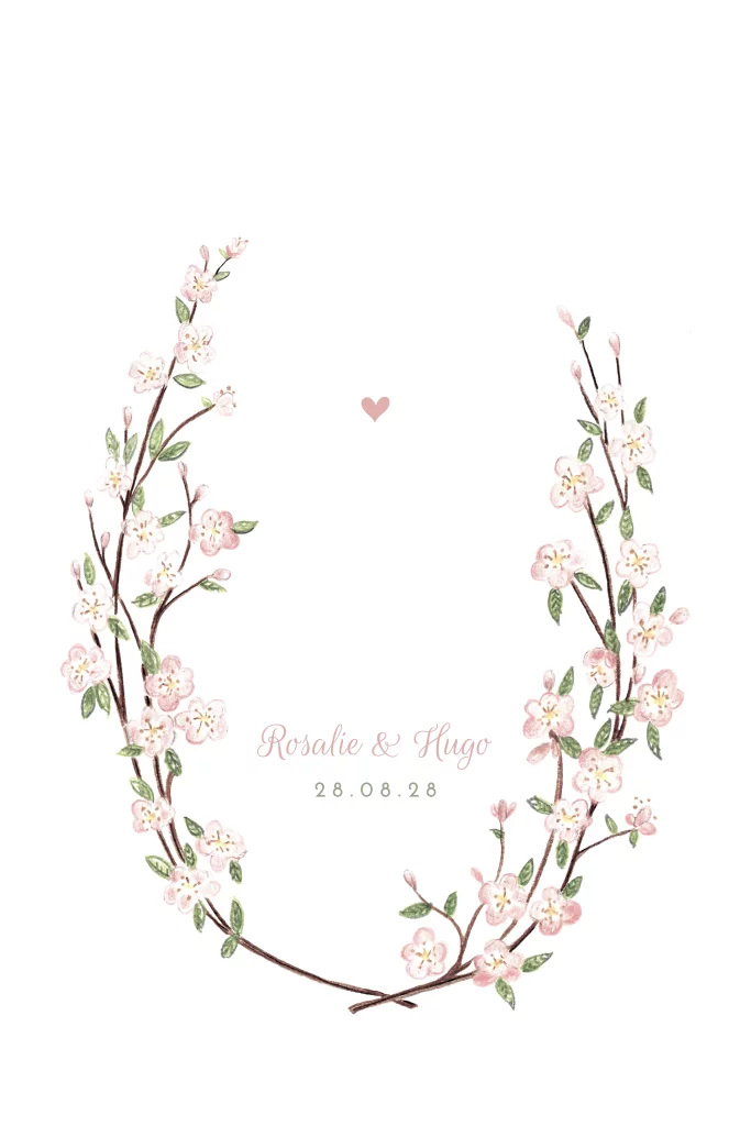 Als je op zoek bent naar een stijlvolle en romantische menukaart, dan is deze menukaart met getekende kersenbloesem perfect voor jou! De pastel bloemen en takjes zorgen voor een romantische look, waardoor je menukaart er uniek en stijlvol uitziet.