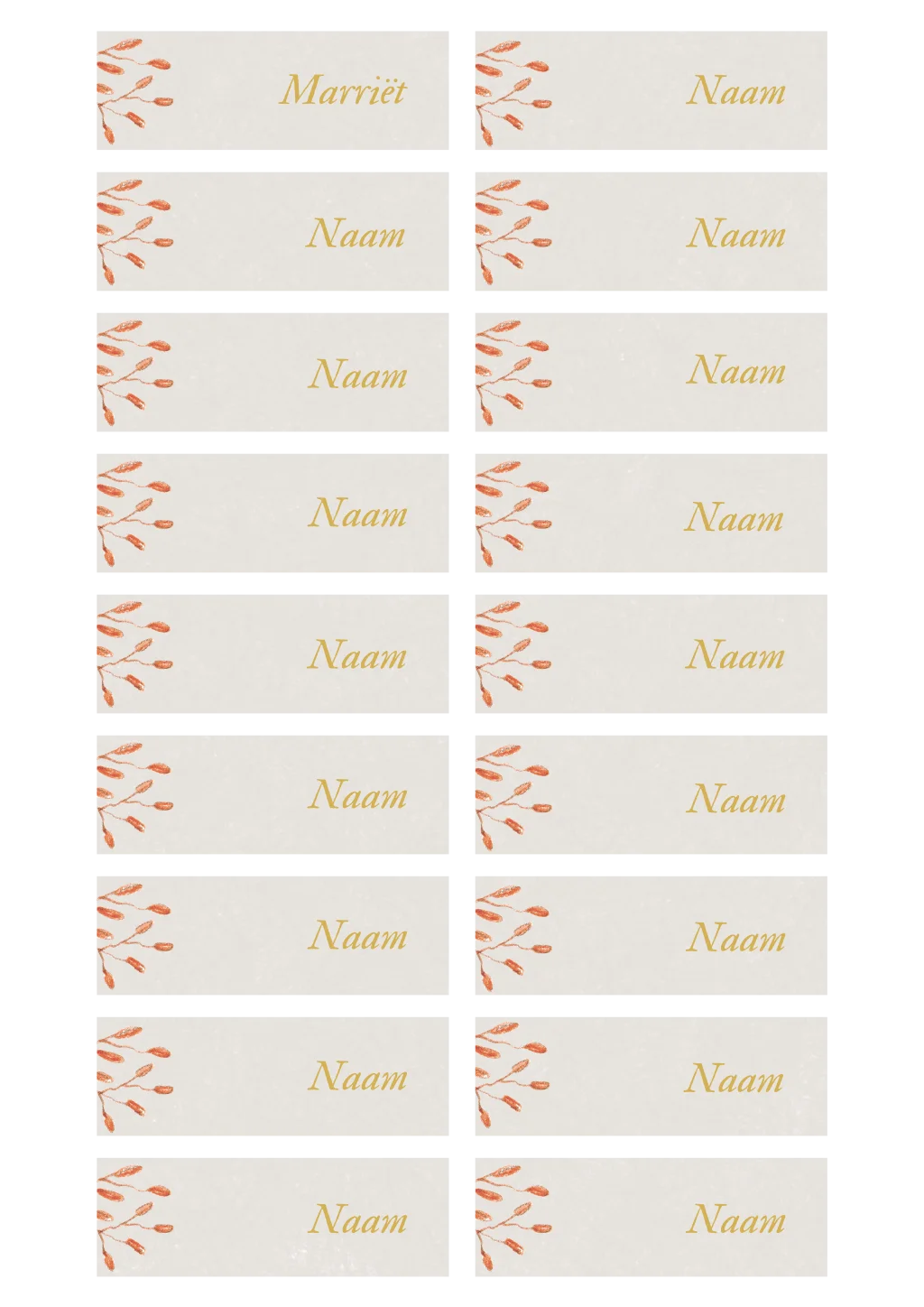 naamkaartjes strookjes klassiek bloemen beige, bevestig deze naamkaartjes met een waxzegel of leuke paperclip aan de menukaart