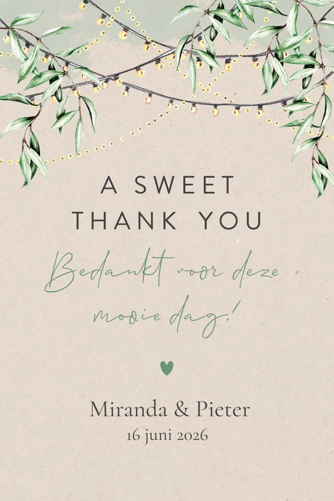 Feestelijke Poster met bedanktekst in de stijl eucalyptus lampjes
