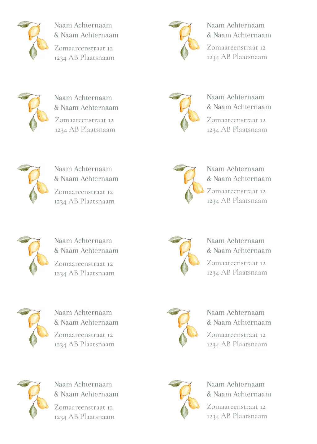 adressticker citroentjes - 97x45mm 10 stuks op 1 vel