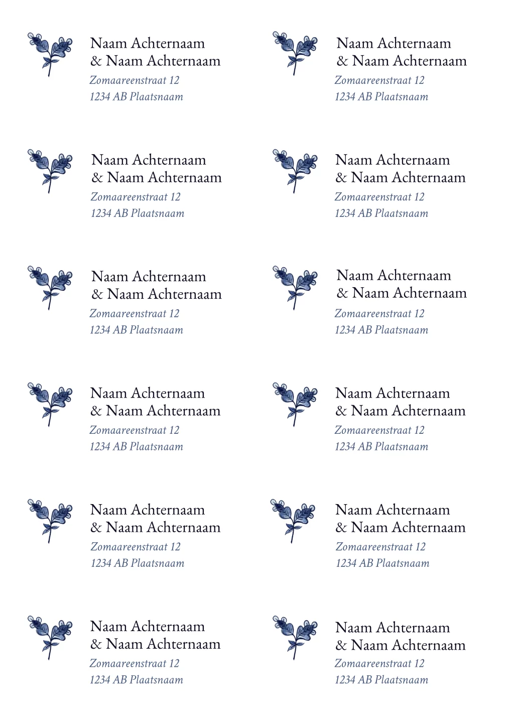 adressticker delfts blauw - 97x45mm 10 stuks op 1 vel