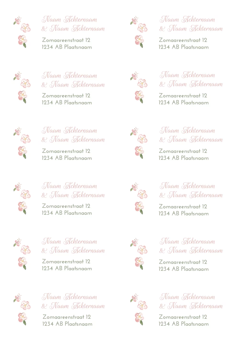 adressticker getekende kersenbloesem bijbehorend bij de trouwhuisstijl kersenbloesem - 97x45mm 10 stuks op 1 vel