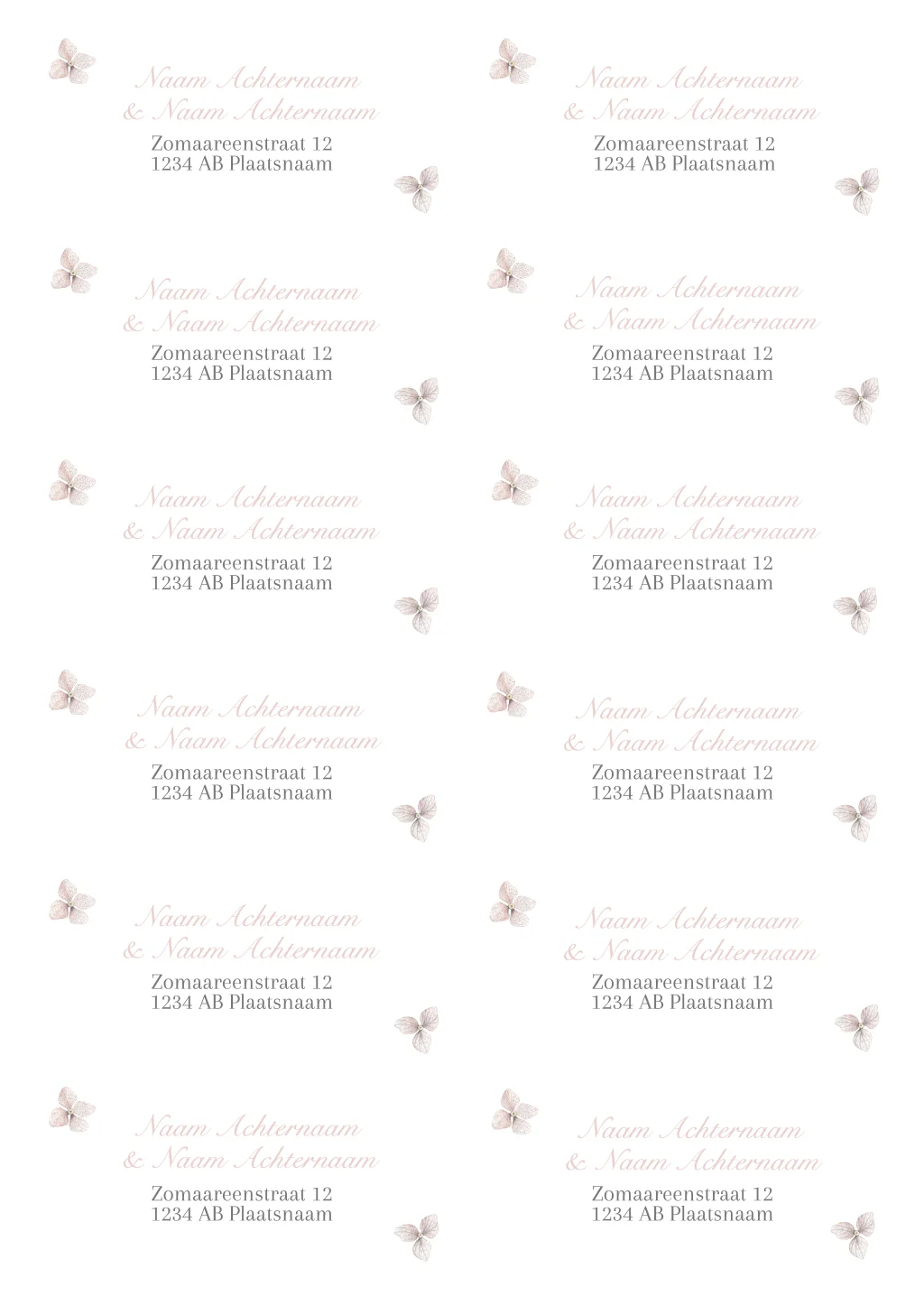 adressticker delicate bijbehorend bij de trouwhuisstijl - 97x45mm 10 stuks op 1 vel