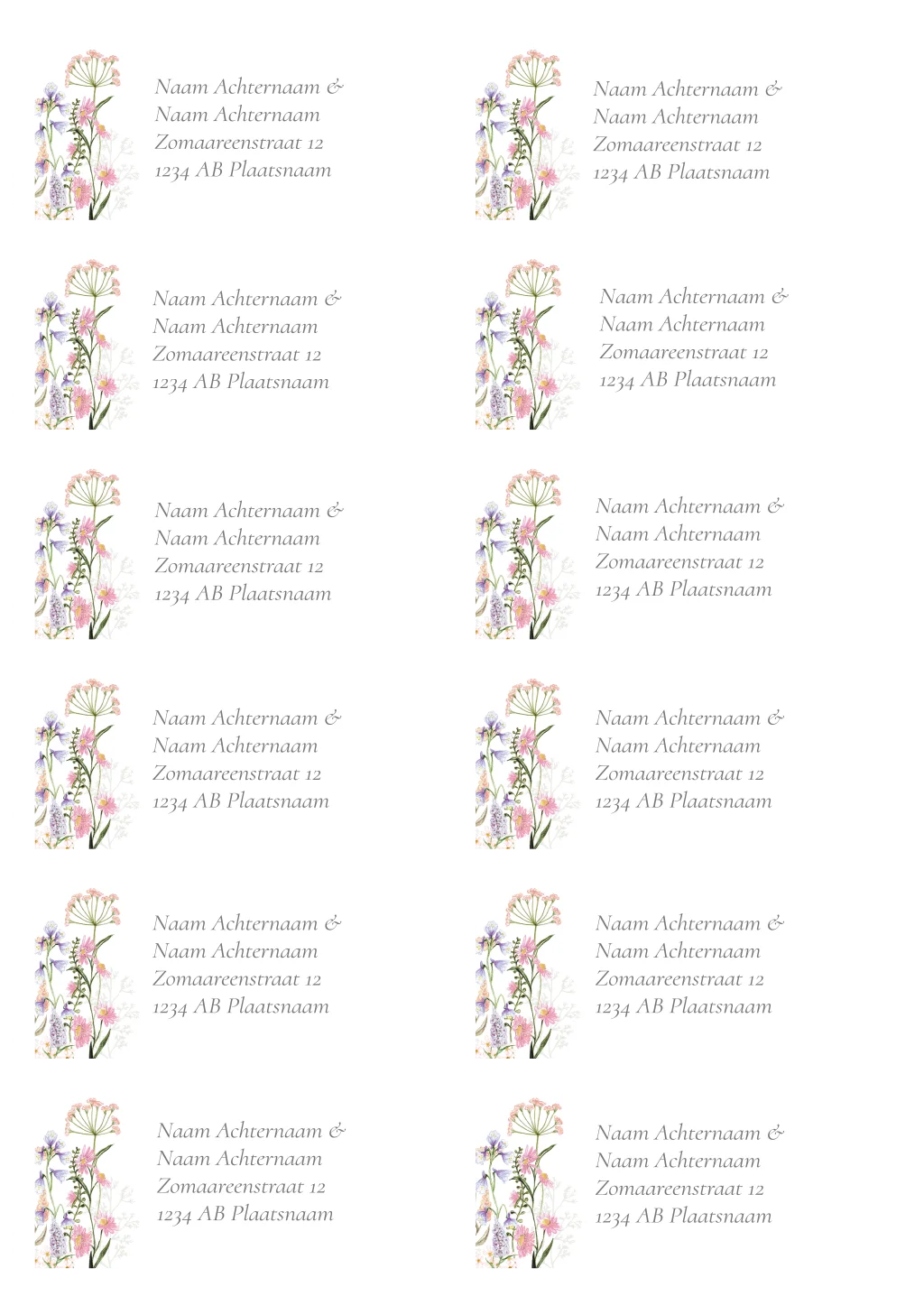 adresstickers veldbloemen lila perzik roze