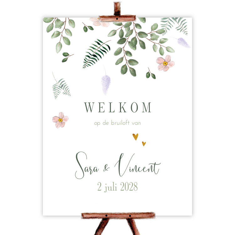 Bruiloftsbord pastel bloemen blaadjes sweet romance – het perfecte welkomstbord voor een romantisch bruiloftsfeest! Dit stijlvolle en chique bruiloftsbord is een echte blikvanger op je bruiloftsfeest. Het bord is bedrukt met bloemen en blaadjes, wat een romantische en sfeervolle look geeft.