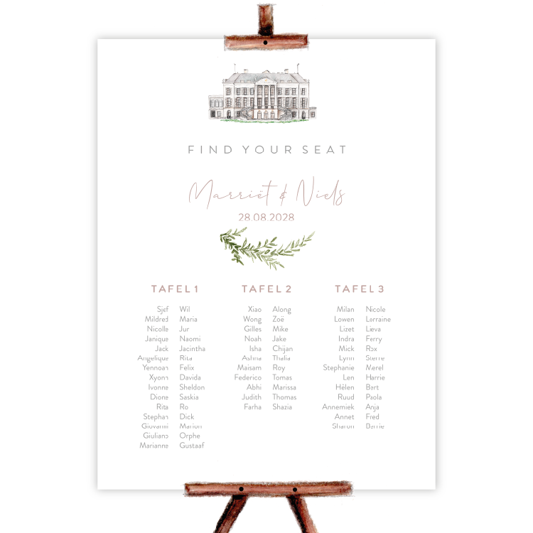 bruiloftsbord seatingplan getekend trouwlocatie parc broekhuizen