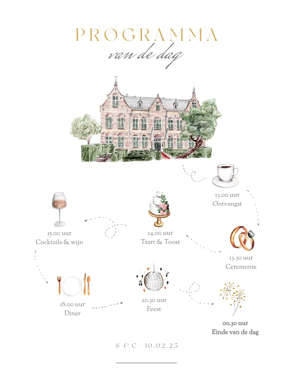 Dit programmabord is onderdeel van de set TROUWLOCATIE KLASSIEK CHIQUE