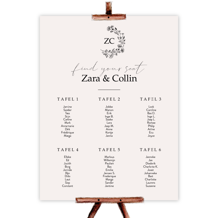 Seatingplan modern bloemen eenvoud