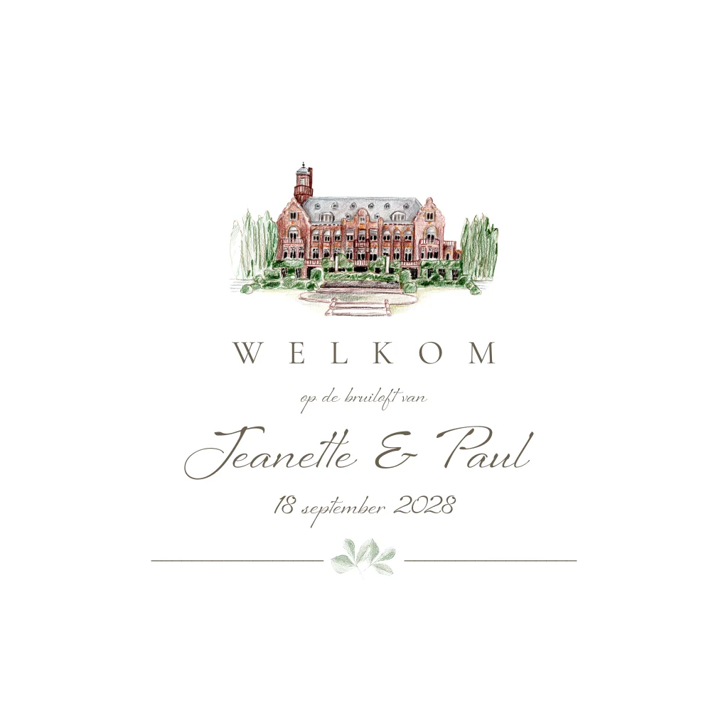 Welkomstbord Getekende Trouwlocatie Kasteel de Hooge Vuursche
